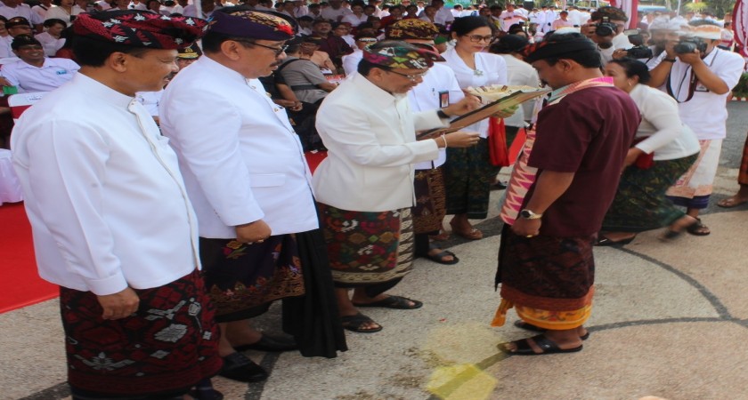 I Nengah Suradnya, S.Pd,.M.Pd diserahkan langsung oleh Bpk.Gubernur Bali I Wayan Koster di Lapangan Puputan Renon, Monumen Bajra Sandi, Denpasar bertepatan dengan upacara peringatan HUT Ke-61 Prov.Bali